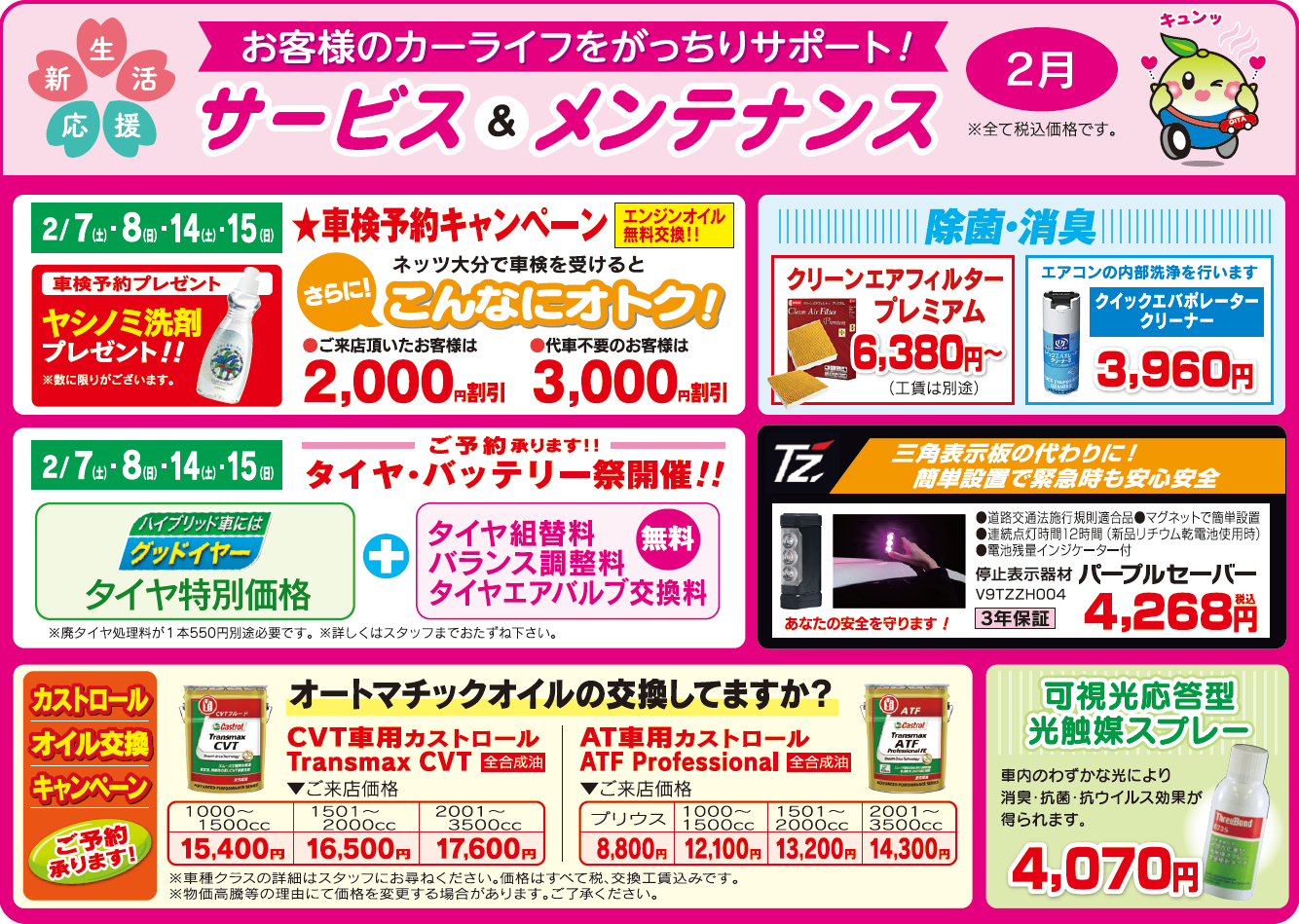 タイヤ特別価格+タイヤ組替料・バランス調整料・タイヤエアバルブ交換料無料